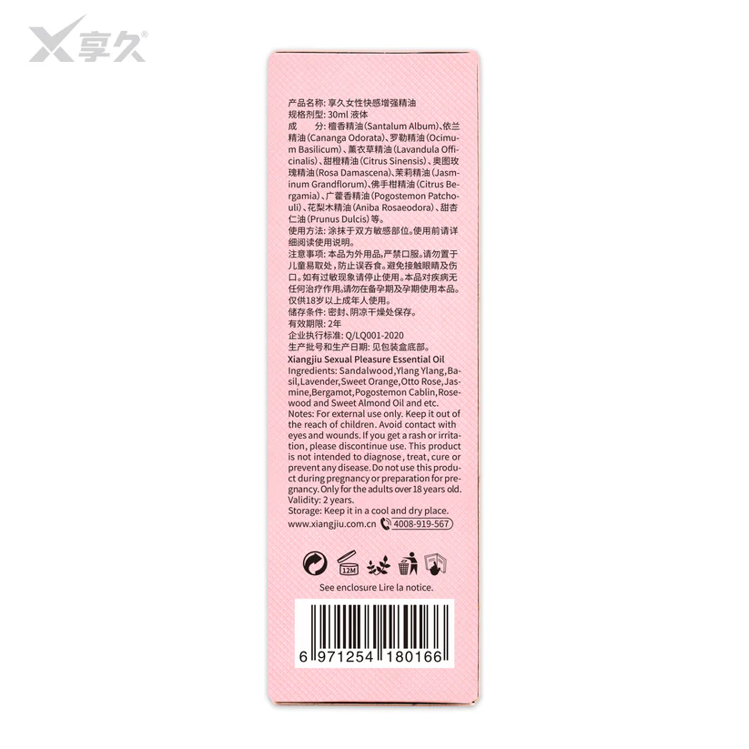 享久女性快感增強精油是2023年享久公司推出的女性快感輔助外用產品,專為亞洲女性體質研發。產品精選全球優質天然植物精油,透過物理萃取工藝保留純淨活性成分,能有效提升女性敏感度、增加欲望,促進私處血液循環,讓女性更容易達到高潮體驗。產品通過多項權威檢測,不含化學添加劑,安全溫和無刺激,是提升夫妻生活品質的秘密武器。